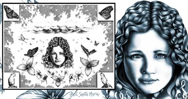 Crazy pencil work, just crazy. Color version has colorized butterflies and yellow sun.