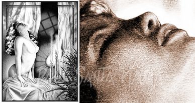 I drew this variation from Da Vinci's " Virgin Of the Rocks" painting...from 1974, while I was waiting for my mom to make dinner! Serious pencil work.