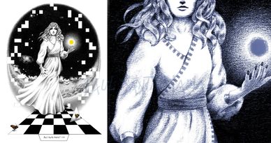 A close-up of the two faces in Seasonal Migration. Just wanted you to see the detail I draw in.